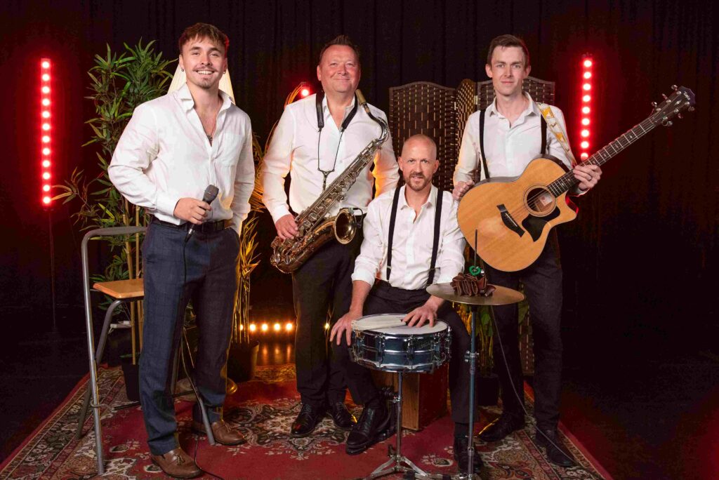 Available in duo, trio, and quartet line-ups. At the heart of the most popular trio format is a custom Cajon drum setup that delivers exceptional versatility — soft and subtle for volume-sensitive spaces, or packing the energy of a full drum kit when the celebration calls for it. The quartet line-up introduces the addition of live saxophone, bringing an extra layer of melody, sophistication, and energy to create a richer, more dynamic live experience.